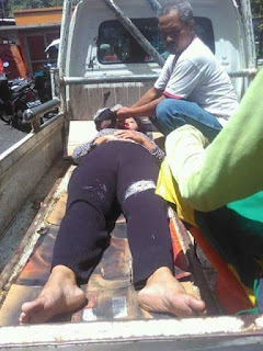 Namun bukannya menolong korbannya, si pengendara motor Satria FU sambil mendorong montornya malah hendak melarikan diri karena takut dimasa.