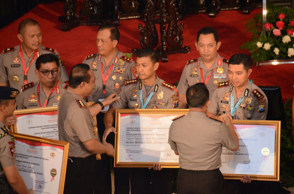 Dalam kesempatan yang sama Kapolri jenderal M Tito karnavian . memberikan penghargaan kepada Kapolda dan Kapolresta/Kapolres berprestasi, termasuk salah satunya pada bidang pelayanan publik.