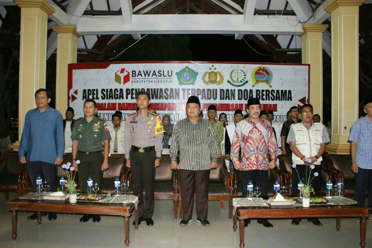 Panitia Pengawas Pemilu (Panwaslu) Kabupaten Sidoarjo melaksanakan apel siaga sekaligus melakukan do’a bersama dalam rangka Pengawasan pemilihan Gubernur dan Wakil Gubernur tahun 2018 di Kabupaten Sidoarjo, Apel di gelar di Alun – alun Sidoarjo, Sabtu, (23/6).