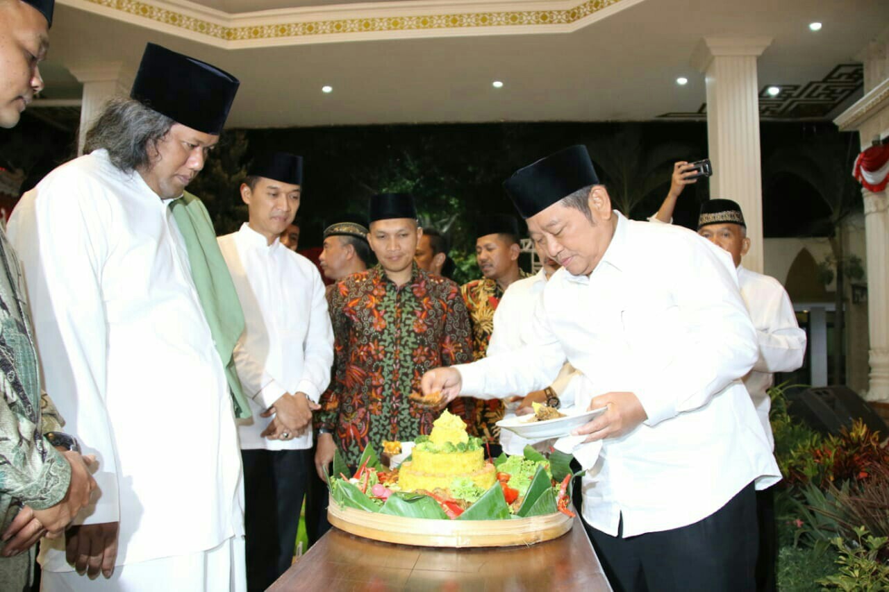 Saat acara berlangsung, Bupati Sidoarjo Saiful Ilah dan Wakil Bupati Sidoarjo Nur Ahmad Syaifuddin terlihat membaur bersama masyarakat. Mereka duduk bersila dikelilingi puluhan nasi tumpeng yang berjajar rapi.