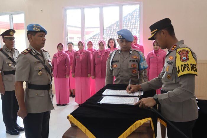 Pasuruan,Sekilasmedia.com Kapolres Pasuruan AKBP Bayu Pratama Gubunagi, S.H., S.I.K., M.Si. memimpin Upacara Pelantikan Kasi Propam sekaligus serta Serah Terima Jabatan (Sertijab) Kapolsek jajaran Polres Pasuruan, bertempat di ruang Rupatama Polres Pasuruan. Rabu (08/03/2023).