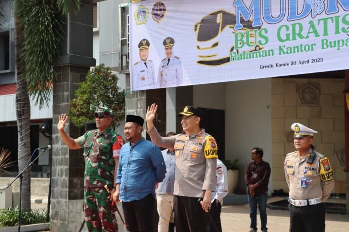 Ditempat yang sama Kapolres Gresik AKBP Adhitya Panji Anom mendukung program pemerintah daerah Kabupaten Gresik untuk melaksanaan mudik bareng gratis.