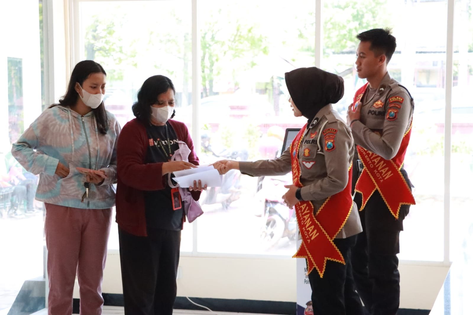 “Baru pertama kali juga, tapi ternyata tempat pelayanannya sangat nyaman dan mudah diketahui karena tempatnya dekat dari pintu masuk. Ini mau ngurus surat kehilangan juga informasi dan arahannya sangat jelas dari petugas”, ucap Risa warga kedungsari. Rabu (5/04), siang.