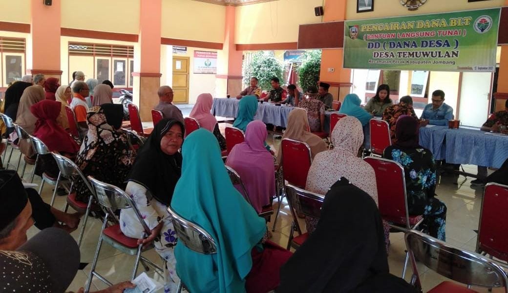 Pada penyaluran bantuan langsung tunai di Desa Temuwulan Kecamatan Perak, dihadiri oleh Kepala Desa Temuwulan BPK Totok, Babinsa, Bhabinkamtibmas Bripka Mulyono Pendamping Desa dan para perangkat desa Temuwulan.