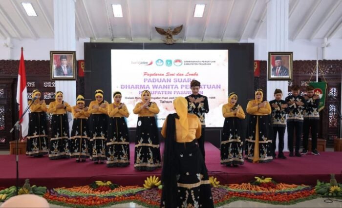 Pasuruan,Sekilasmedia.com – Mengikuti lomba Padus Hari Jadi Kabupaten Pasuruan Dinas Pendidikan dan Kebudayaan Kabupaten (Disdikbud), berhasil meraih juara ke 3, acara yang digelar oleh Pembina Dharma Wanita Persatuan (DWP) Kabupaten Pasuruan, Ibu Lulis Irsyad Yusuf membuka Lomba Paduan Suara dalam rangka Hari Jadi Kabupaten Pasuruan ke 1094, di Pendopo Nyawiji Ngesti Wenganing Gusti. Rabu (06/09/2023).