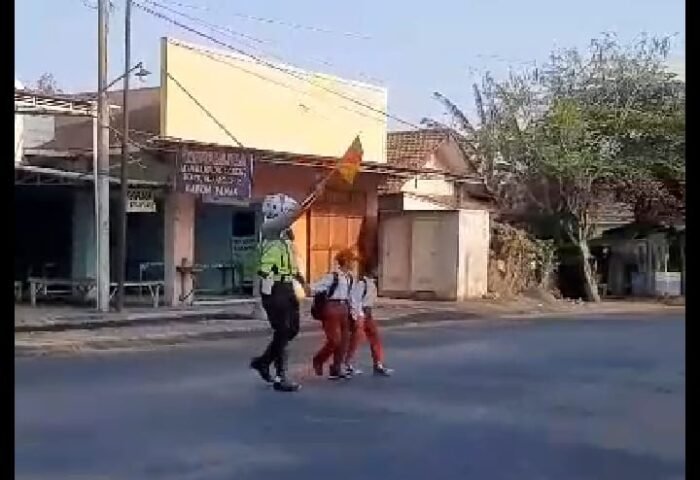 Probolinggo.sekilasmedia.com- Anggota Satlantas Polres Probolinggo, Aipda Sugeng melaksanakan poros pagi dengan membantu menyebrangkan anak sekolah SDN Jorongan di Jalan Raya Leces, Selasa (3/10/2023).