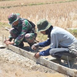 “Semua bekerja bersama di sini, tidak pilih ini untuk TNI dan ini untuk warga, anggota TNI juga angkut angkut pasir, koral, pasang begisting, adukan cor juga”, ujar Maryanto.