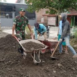 Bertempat di tengah-tengah masyarakat,Sertu Muslihat Babinsa aktif turun langsung untuk bersinergi dengan warga dalam membersihkan lingkungan. Dengan semangat gotong-royong, mereka bersama-sama dalam pembuatan plengsengan aliran selokan untuk kelancaran pengairan pertanian.