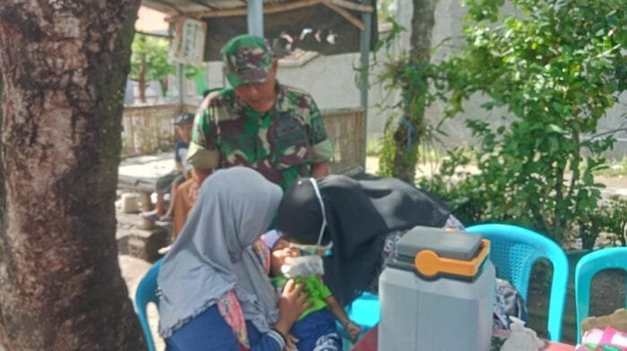 Jombang,Sekilasmedia.com Babinsa Desa Jarakkulon Koramil 18/Jogororo Kodim 0814/Jombang Sertu Syaipul Amin melaksanakan giat pendampingan vaksinasi tetes polio bertempat di posyandu Dahlia IV Ds.Jarakkulon Kec.Jogoroto Kab.Jombang,Senin ( 22-01-2024 ).