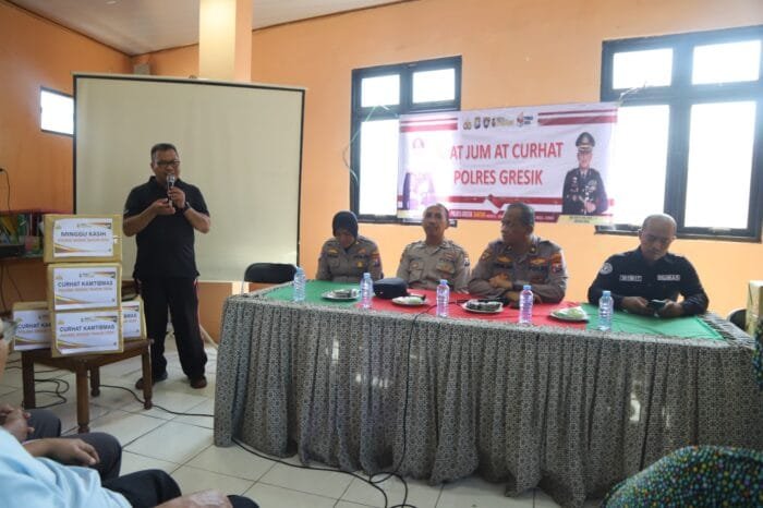 Gresik, Sekilasmedia.com – Polres Gresik menggelar kegiatan Jumat Curhat Kamtibmas di Balai Kelurahan Telogopojok, Gresik. Program Jumat Curhat merupakan upaya Polri mempererat hubungan dengan masyarakat secara langsung.