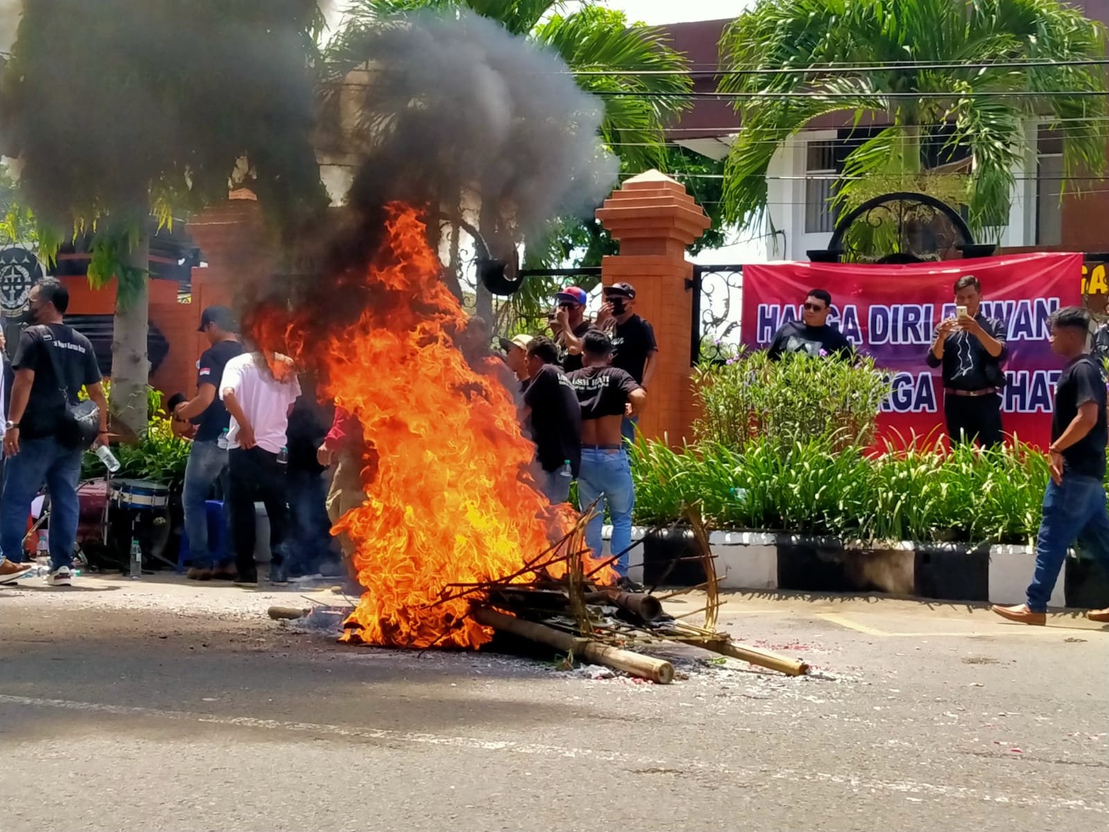 Massa juga membakar ban bekas sehingga sempat membuat macet arus lalu lintas di depan kejaksaan Negeri Kota Kediri. Selanjutnya perwakilan massa diperkenankan masuk kedalam kejaksaan untuk menyampaikan aspirasi dan tuntutannya.