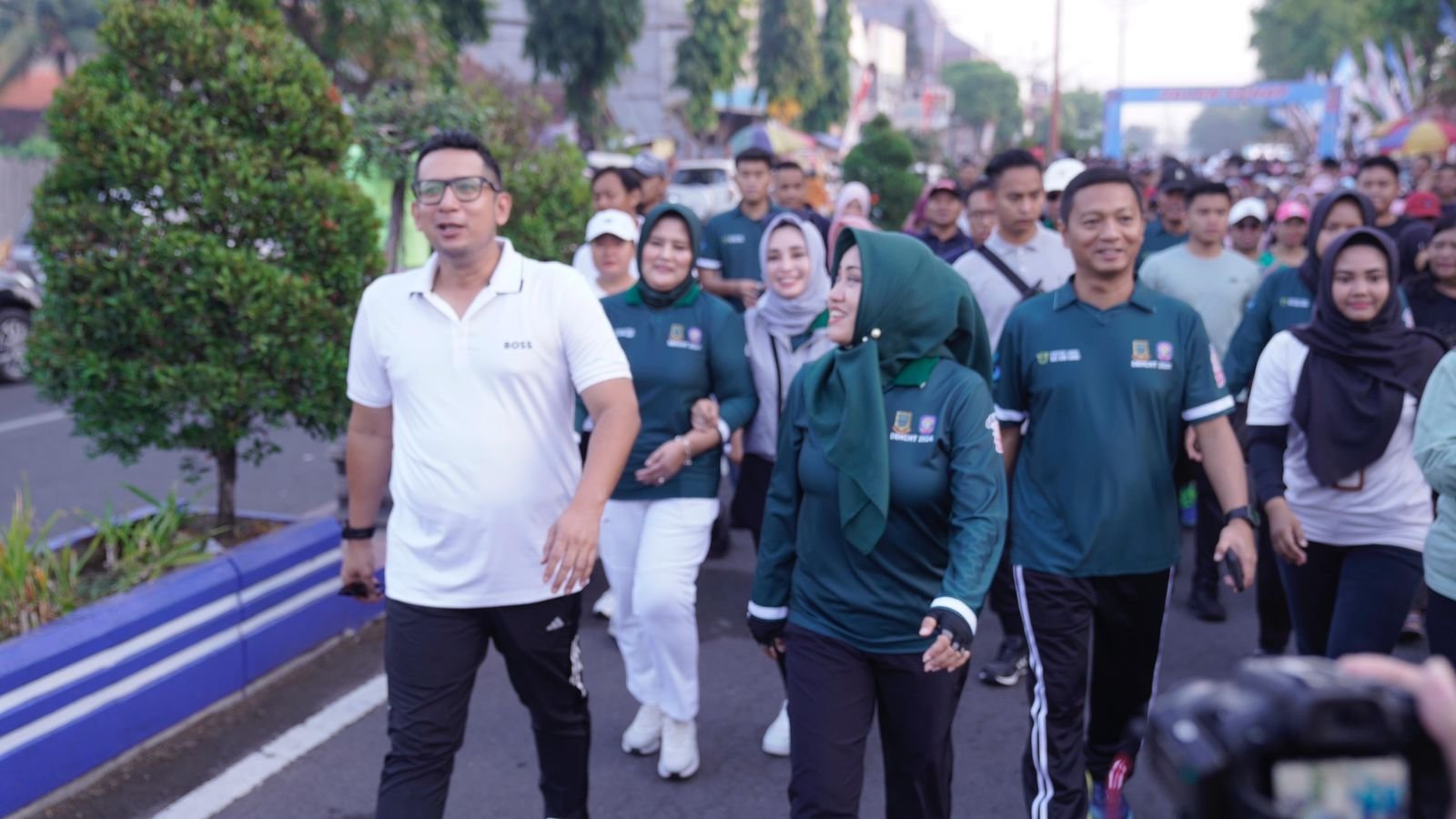 Mojokerto, Sekilasmedia.com – Penjabat (Pj.) Wali Kota Mojokerto M. Ali Kuncoro dan Bupati Mojokerto Ikfina Fahmawati kompak jalan santai bersama ribuan masyarakat, Minggu (16/6).