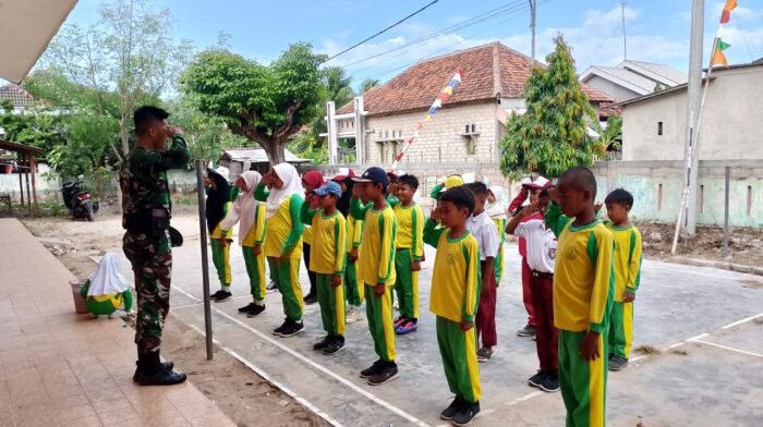 Sumenep, Sekilasmedia.com – Tak hanya berkonsentrasi pada bangunan fisik saja. Sejumlah Satgas TMMD ke-121 Kodim 0827/Sumenep juga menyempatkan diri sambangi SDN Buddi di dusun Tembang, Desa Buddi, Kecamatan Arjasa, Selasa (06/08/2024).