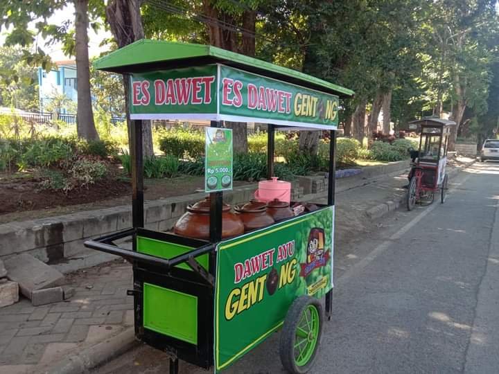 Tak jauh dari Batas Kota Wiroborang – Dringu Sekitar 300 Meter ke arah timur, di utara (kiri) jalan nampak sebuah gerobak berwarna hijau dan coklat tua bertuliskan “DAWET AYU GENTONG” yang sangat mudah untuk ditemui. Uniknya, Potongan-potongan dawet, santan, dan gula tersebut diletakkan di tempat tradisional yakni Gentong yang berbahankan tanah liat, bahkan mangkok untuk makan ditempat pun juga dari bahan yang sama.