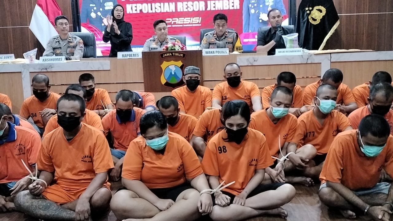 Kapolres Jember, AKBP Bobby Anugrah Christianto, mengatakan bahwa dari total tersangka, 25 di antaranya adalah laki-laki dan dua orang perempuan. Dari jumlah itu, 23 tersangka terkait kasus narkotika dan empat tersangka terkait kasus okerbaya.