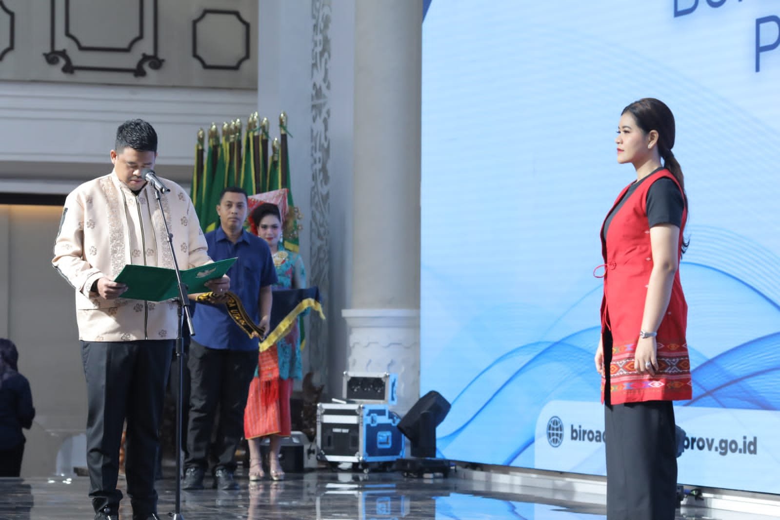 Medan, 13 Agustus 2025 – Pemerintah Provinsi Sumatera Utara menggelar prosesi pengukuhan Bunda Literasi dan Bunda PAUD dari 33 kabupaten/kota se-Provinsi Sumatera Utara di Aula Raja Inal Siregar, Kantor Gubernur Sumatera Utara, Jalan Diponegoro, Medan. Dalam kesempatan tersebut, Bunda Literasi dan Bunda PAUD Provinsi Sumatera Utara, Ny. Kahiyang Ayu Bobby Afif Nasution, secara resmi mengukuhkan Ny. Yusnila Indriati Taufik, istri Bupati Asahan Taufik Zainal Abidin Siregar, S.Sos., M.Si., sebagai Bunda Literasi dan Bunda PAUD Kabupaten Asahan.