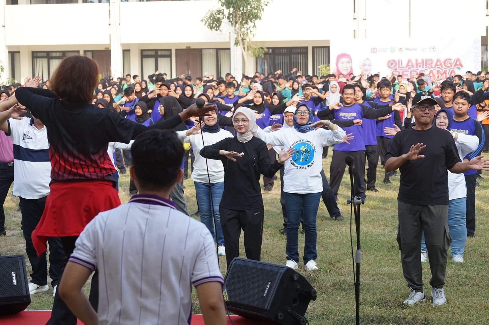Kediri,Sekilasmedia.com-Wali Kota Kediri Vinanda Prameswati senam bersama di SMPN 9 Kota Kediri, Jumat (26/09/2025). Kegiatan ini dalam rangka memperingati Hari Olahraga Nasional (Haornas) XLII tahun 2025. Olahraga bersama ini dilakukan serentak di Jawa Timur secara virtual. Ada 3 senam yang dilakukan dalam olahraga bareng ini. Yakni, Senam SKJ 88 Reborn, Senam Laga, dan Senam Tabola Bale.