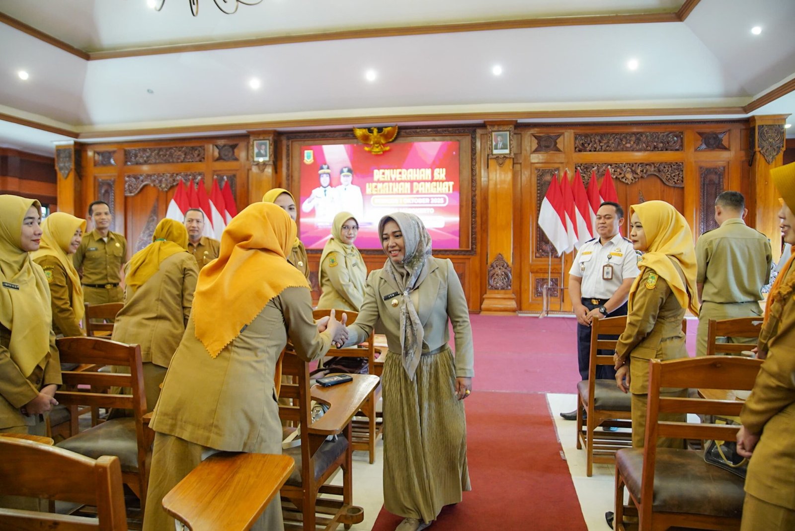 Mojokerto,Sekilasmedia.com – Sebanyak 56 Aparatur Sipil Negara (ASN) di lingkungan Pemerintah Kota Mojokerto menerima Surat Keputusan (SK) Kenaikan Pangkat periode 1 Oktober 2025. Penyerahan SK tersebut dilakukan secara langsung oleh Wali Kota Ika Puspitasari di Ruang Sabha Mandala Madya, Balai Kota Mojokerto pada Senin (15/9).