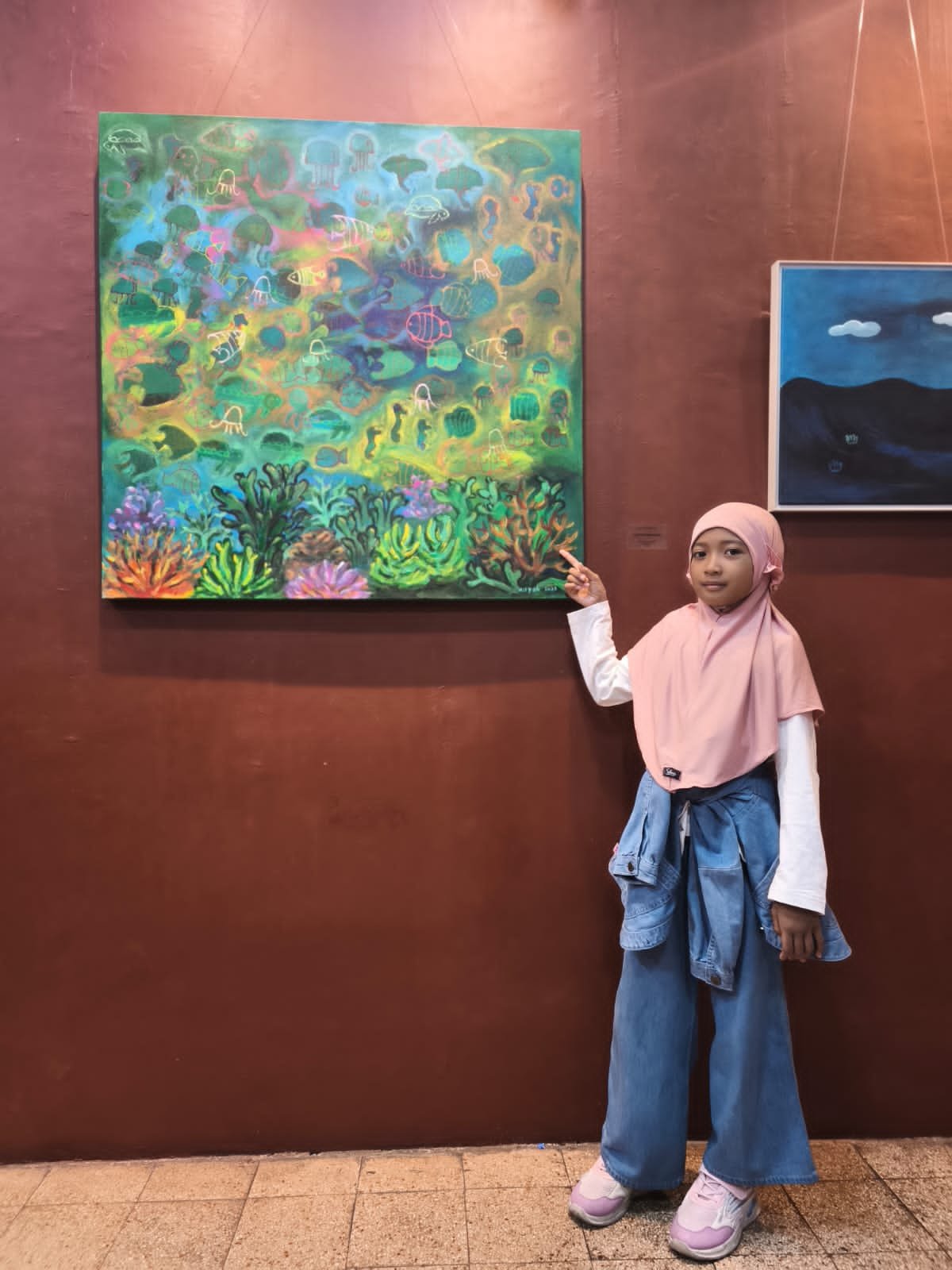 Surabaya,Sekilasmedia.com – Aisyah Hilya yang bernama lengkap Hilyah Aisyah Darmawan lahir di Gresik, 9 Juli 2015. Saat ini Aisyah bersekolah kelas V di SD Al Islam Morowudi Gresik. Belajar pada Sanggar DAUN sejak Februari 2025, dengan bakat dan gairah melukis yang kuat, Aisyah Hilya mampu mengeksplorasi imajinasi dan kreativitas dengan produktivitas yang tinggi.