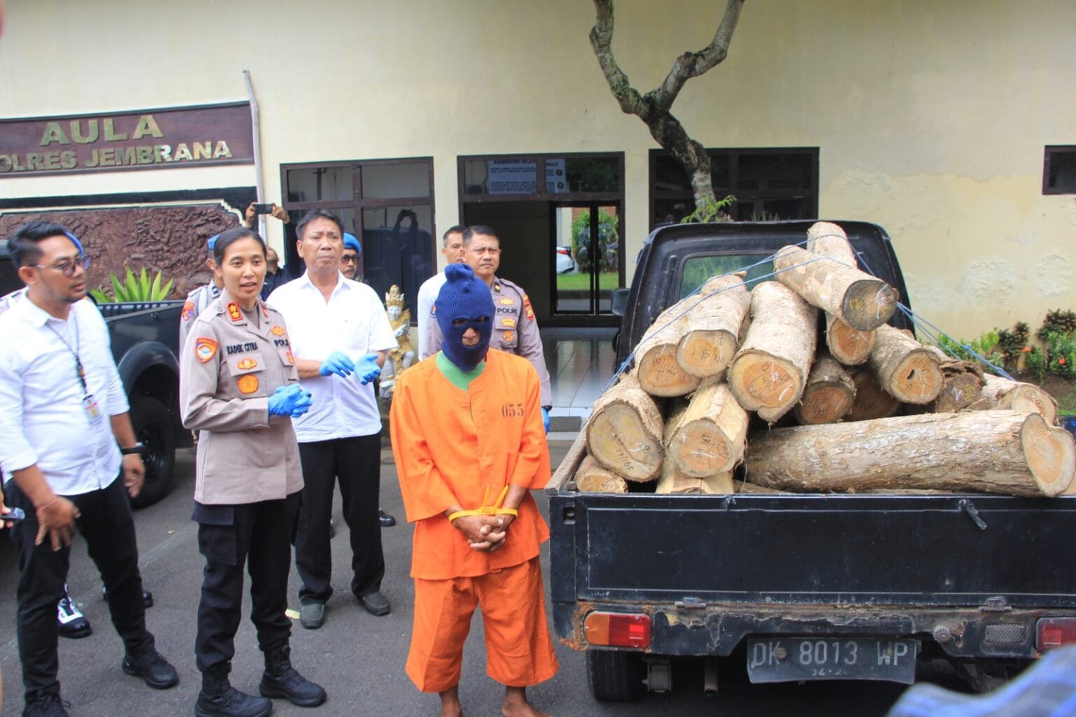 “Tersangka diamankan saat sedang memuat 32 gelondong kayu jati di mobil pickup miliknya. Kayu itu hendak dibawa ke tempat pemotongan kayu (sirkel) untuk dipecah sebagai papan dan selanjutnya dijual,” ujar AKBP Kadek Citra.