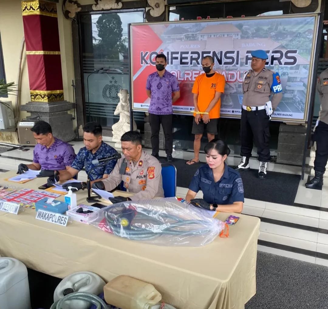 Dari pengungkapan itu seorang pria bernama Aris Suryono (43) asal Ngawi, Jawa Timur, ditangkap, saat melancarkan aksinya di SPBU 54.803.37 Jalan Bypass Tanah Lot, Desa Cemagi, Kecamatan Mengwi, Badung, pada Selasa (16/9) malam.