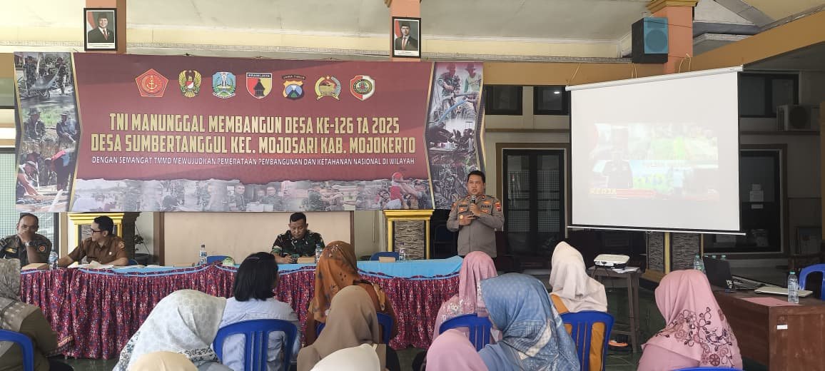 Mojokerto,Sekilasmedia.com – Selain kegiatan pembangunan fisik, pelaksanaan TNI Manunggal Membangun Desa (TMMD) ke-126 Kodim 0815/Mojokerto juga diisi dengan program nonfisik berupa penyuluhan dan sosialisasi kepada masyarakat. Kegiatan tersebut digelar di Balai Desa Sumbertanggul, Kecamatan Mojosari, Kabupaten Mojokerto, Selasa (14/10/2025).