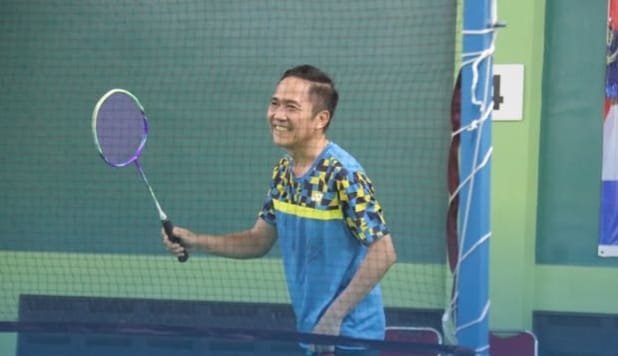 kekuatan Walikota Palembang dalam pertandingan bulu tangkis persahabatan. Aksi adu smash dan rally ini berlangsung sebagai bagian dari rangkaian acara silaturahmi di sela-sela agenda Korpri.