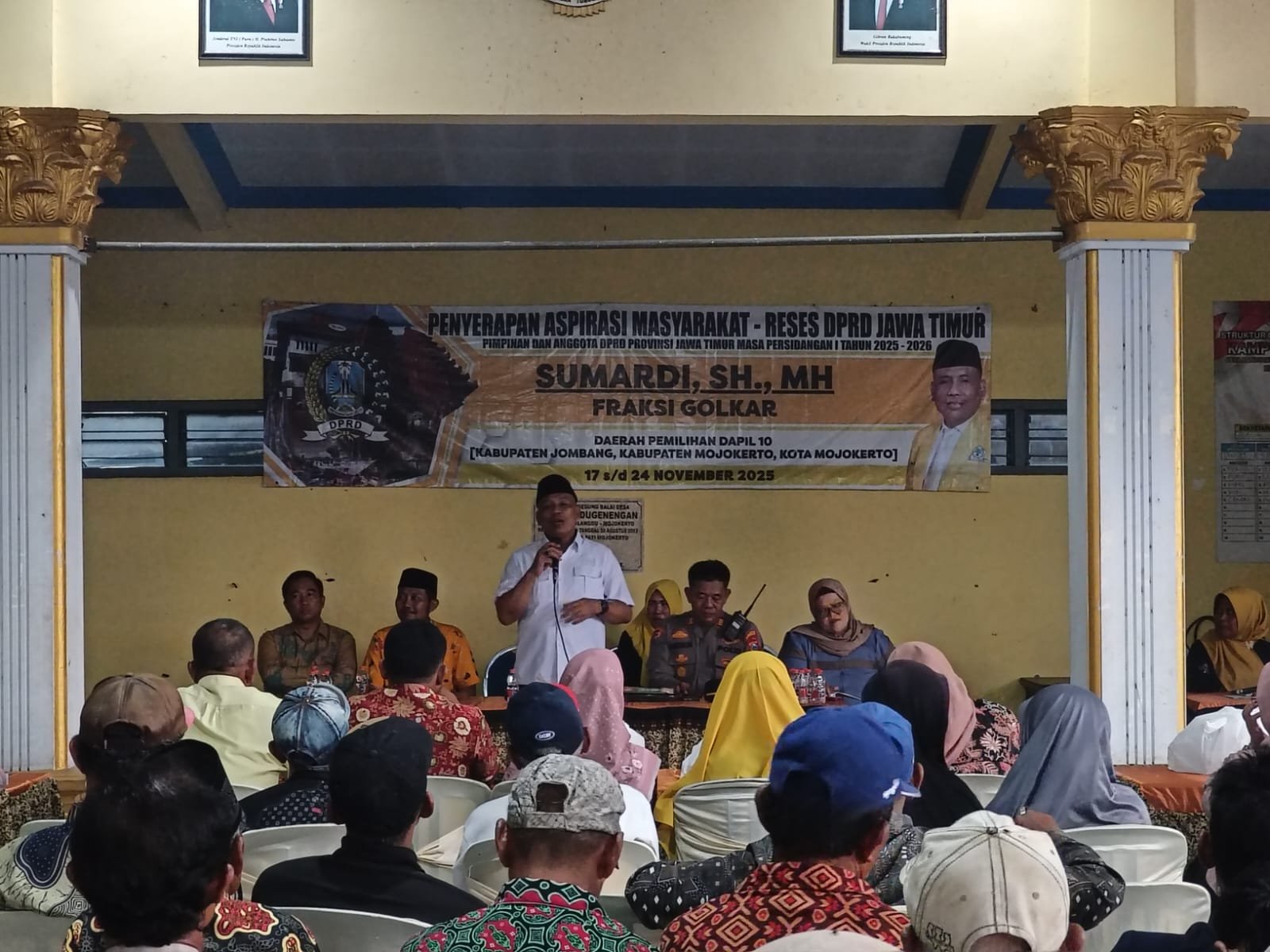 Mojokerto,Sekilasmedia.com-Balai Desa Randugenengan, Kecamatan Dlanggu, mendadak ramai pada Rabu, (19/11/25). Puluhan warga berkumpul dengan antusias mengikuti reses Anggota DPRD Provinsi Jawa Timur dari Fraksi Partai Golkar, Sumardi, yang turun langsung menyapa konstituennya.