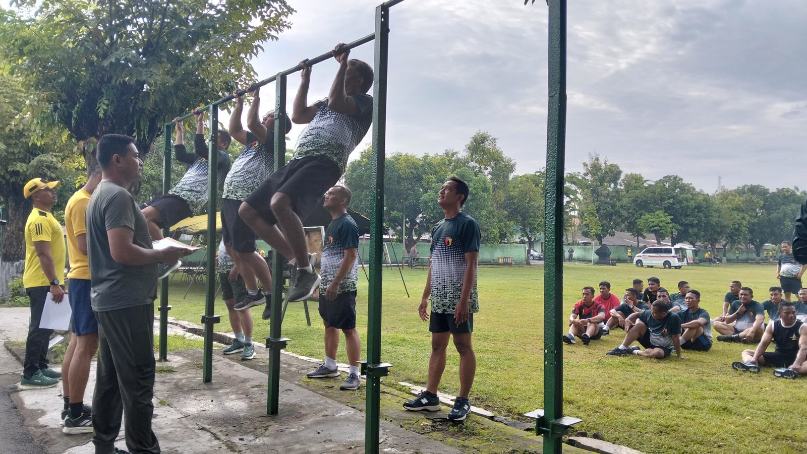 Selanjutnya, peserta melaksanakan lari 12 menit (Garjas A), diikuti Garjas B yang meliputi pull up, sit up, push up, dan shuttle run. Setelah itu, kegiatan dilanjutkan dengan renang militer di Kolam Renang Wisata BMJ Mojopahit sebagai bagian dari uji ketangkasan jasmani.