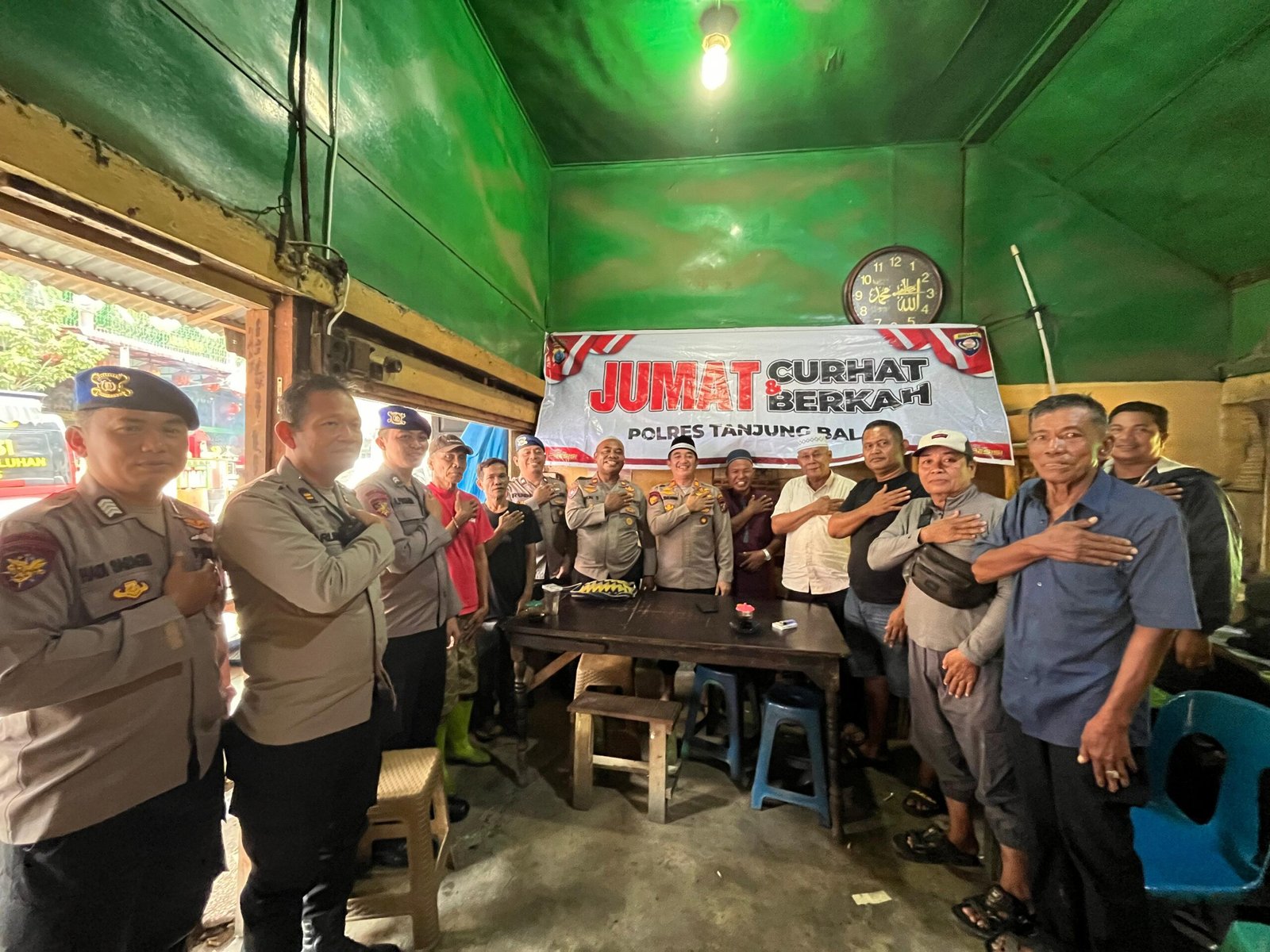 Tanjung Balai,Sekilasmedia.com– Polres Tanjung Balai kembali menggelar kegiatan “Jumat Curhat” yang disambut hangat masyarakat. Kali ini, Kasat Polairud AKP M. Tanjung, S.H., bersama Kasat Binmas IPTU Zainuddin memilih Warung Kopi Pak Iskandar di Jalan Asahan sebagai lokasi untuk berdiskusi santai sambil menyerap aspirasi warga.