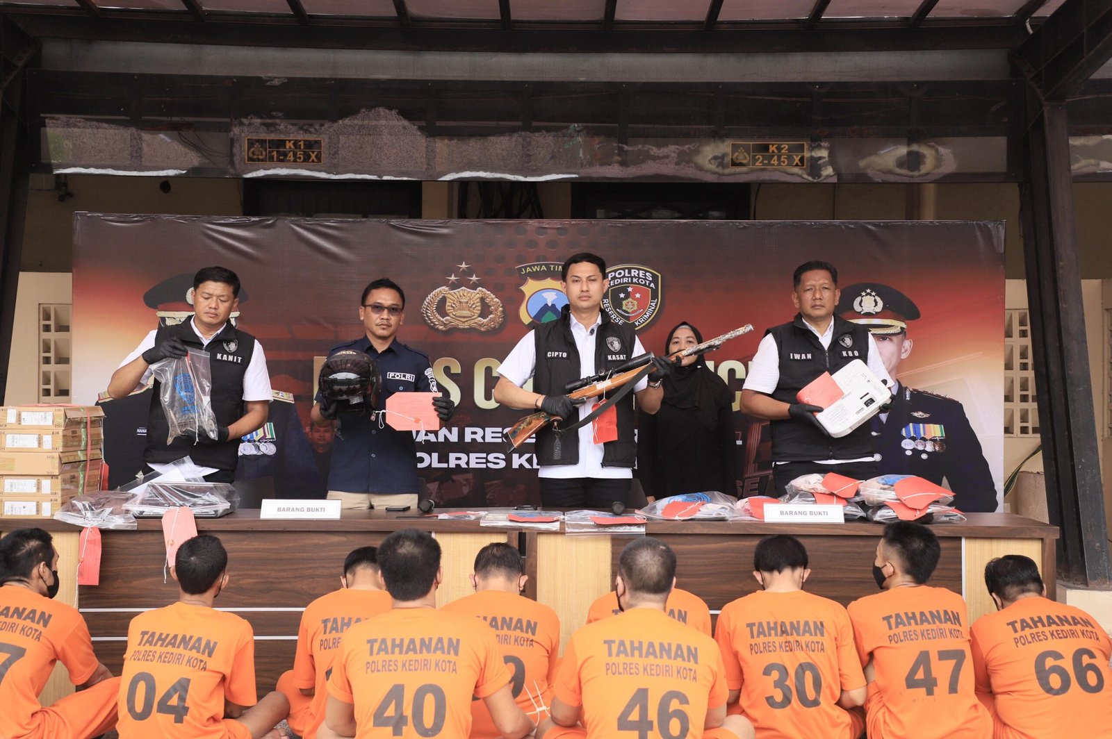 Adapun rincian perkara tersebut tersangka BC mencuri sepeda motor di Desa Jatirejo Kecamatan Banyakan, tersangka ASJ mencuri sepeda motor dan ditukarkan satu pucuk senapan angin di Desa Bulu Kecamatan Semen, tersangka PP dan SK mencuri satu proyektor serta printer di Desa Manyaran Kecamatan Banyakan.
