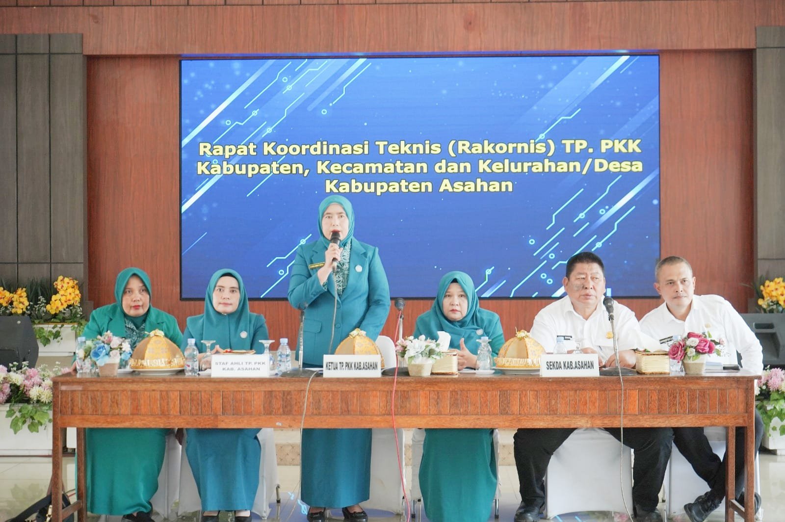 Asahan,Sekilasmedia.com- 19 November 2025 Upaya memperkuat pemberdayaan keluarga, meningkatkan kesejahteraan perempuan, dan menguatkan peran dasawisma menjadi fokus utama TP. PKK Kabupaten Asahan pada Rapat Koordinasi Teknis (Rakornis) PKK bulan November bersama kecamatan, desa, dan kelurahan. Pertemuan ini menegaskan pentingnya konsistensi pelaksanaan 10 Program Pokok PKK yang berhubungan langsung dengan peningkatan kualitas hidup keluarga, khususnya pada aspek pendidikan keluarga, kesehatan, ekonomi rumah tangga, dan ketahanan keluarga. Sekretaris Daerah Kabupaten Asahan Drs. Zainal Arifin Sinaga, M.H., menyampaikan pesan Bupati Asahan bahwa keluarga merupakan pusat pembangunan masyarakat. “TP PKK memiliki kontribusi besar dalam membentuk keluarga yang mandiri dan berdaya,” ujarnya.