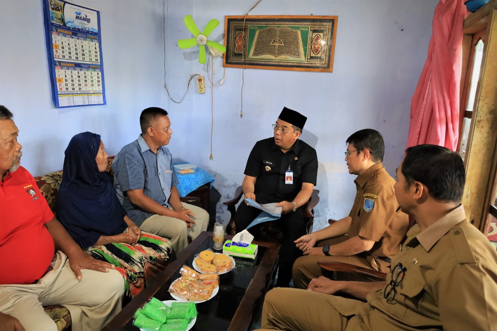 Kunjungan pertama dilakukan ke rumah alm. Ayis (73) di Jalan Wijaya Kusuma RT 12/RW 01, Kelurahan Sukabumi. Di lokasi tersebut, wali kota disambut oleh istri almarhum, Senima yang menerima santunan dan berkas kependudukan yang telah diperbarui.