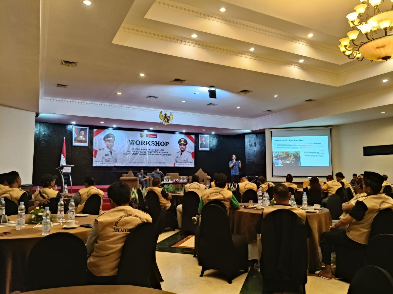 Mojokerto,Sekilasmedia.com – Badan Kesatuan Bangsa dan Politik (Bakesbangpol) Kabupaten Mojokerto kembali menggelar workshop bertema “Sinergitas Pemerintah dan LSM dalam Mewujudkan Pemberdayaan Masyarakat yang Inklusif dan Responsif”. Kegiatan berlangsung di Royal Hotel Batu pada 20–21 November 2025 dengan melibatkan unsur pemerintah daerah serta lembaga swadaya masyarakat (LSM).