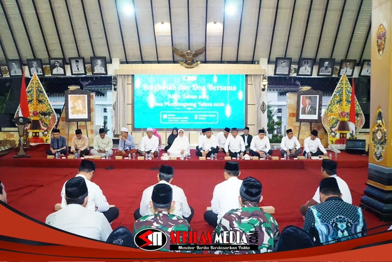 Magetan,Sekilasmedia.com- Menjelang pergantian tahun, Pemerintah Kabupaten Magetan menggelar Istighosah dan Doa Bersama dalam rangka penutupan akhir tahun 2025 sekaligus menyongsong Tahun Baru 2026. Kegiatan tersebut berlangsung khidmat di Pendopo Surya Graha Magetan, Selasa (30/12/2025).