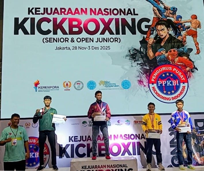 JAKARTA,Sekilasmedia.com – Prestasi membanggakan kembali datang dari dunia olahraga Mojokerto. Khabib Wahyu Al-Nashir, siswa MA Unggulan Hikam Bendungan Jati, Pacet, Mojokerto, sukses mengukir sejarah sebagai satu-satunya atlet kickboxing asal Mojokerto yang lolos hingga babak nasional dan berhasil meraih gelar juara pada Kejurnas Senior & Junior Kickboxing Indonesia 2025.