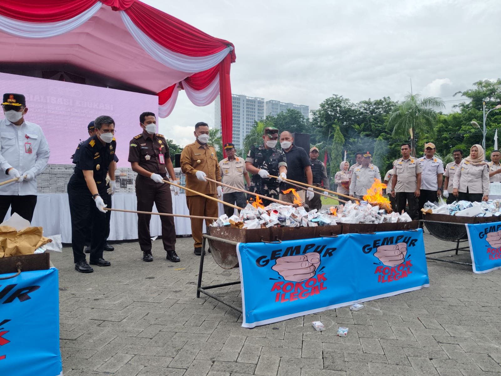Bertempat di halaman Kantor Bupati Gresik, Selasa (9/12/2025), barang bukti yang dimusnahkan berupa 9,8 juta batang rokok ilegal dan 394,2 liter Minuman Mengandung Etil Alkohol (MMEA) ilegal.