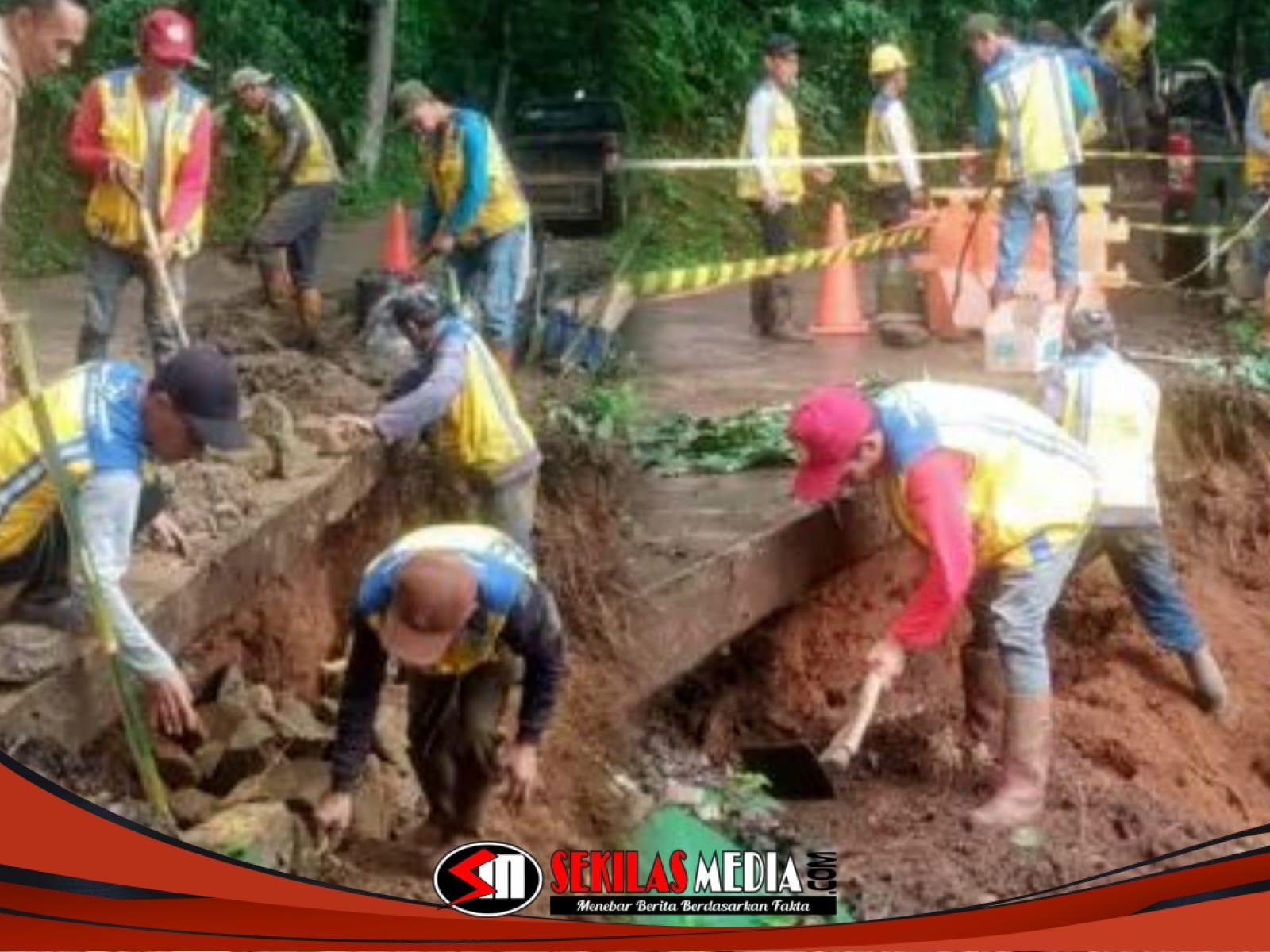 Pemeliharaan Bahu Jalan Longsor di Ruas Jalan Legokhuni-Pareang (foto ; doc/Ade Irma/Sekilasmedia.com)