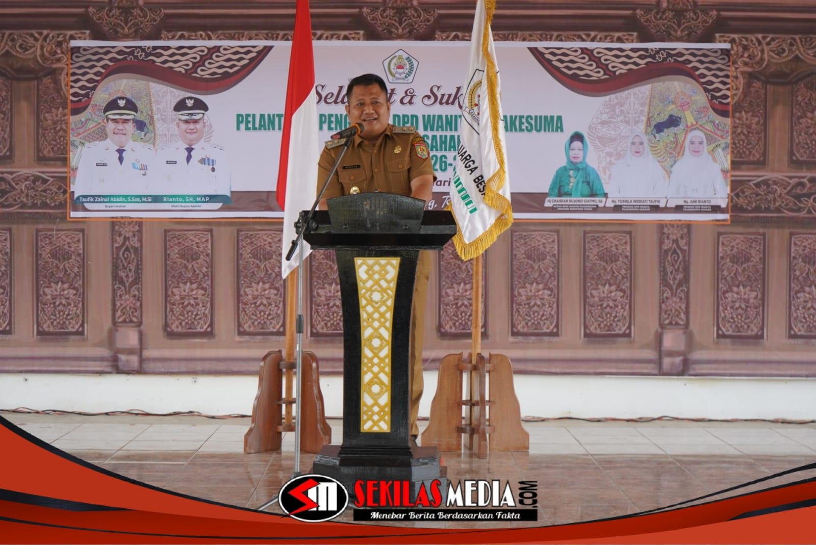 Sementara itu, Wakil Bupati Asahan Rianto, S.H., M.AP., yang juga selaku Ketua DPD Pujakesuma Kabupaten Asahan, dalam sambutannya menegaskan bahwa Wanita Pujakesuma memiliki peran strategis dalam memperkuat ketahanan keluarga, menjaga nilai budaya, serta mendorong partisipasi sosial perempuan. Ia menyampaikan bahwa Pemerintah Kabupaten Asahan terbuka untuk bersinergi dan mendukung program-program Wanita Pujakesuma yang sejalan dengan arah pembangunan daerah, khususnya pada bidang pemberdayaan perempuan, ekonomi kerakyatan, pendidikan keluarga, dan pelestarian nilai budaya lokal.