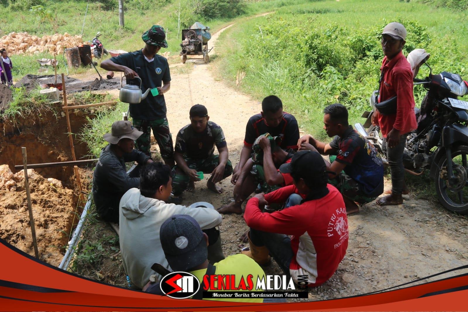 Kebersamaan tersebut menjadi potret kemanunggalan TNI dan rakyat dalam mendukung percepatan pembangunan desa. Di sela waktu istirahat, Foto.Trisno