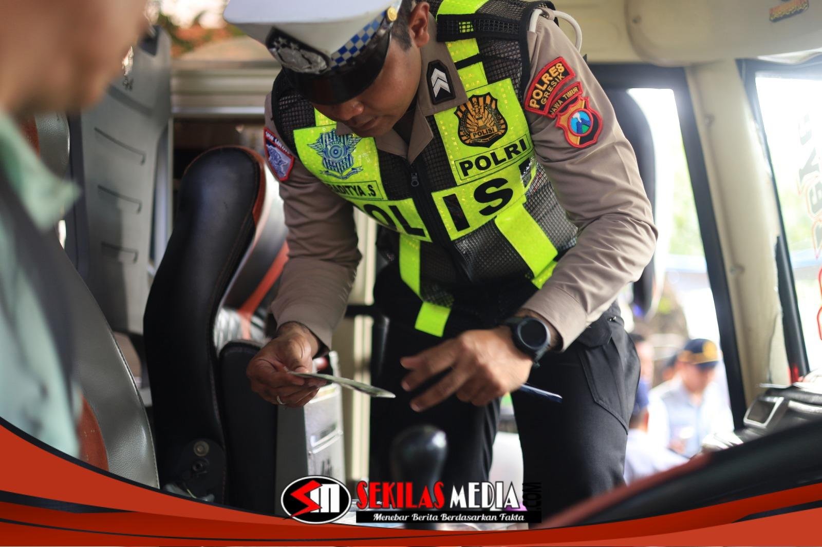 Gresik,Sekilasmedia.com – Menjelang meningkatnya mobilitas masyarakat dalam rangka Idul Fitri 1447 H tahun 2026, Satuan Lalu Lintas Polres Gresik bersama jajaran Polda Jawa Timur memperketat pengawasan terhadap armada angkutan umum, khususnya bus pariwisata. Langkah preventif ini diwujudkan melalui kegiatan supervisi rampcheck dan inspeksi menyeluruh di Garasi PO Joglo Baru, Gresik, Rabu (18/2/2026).