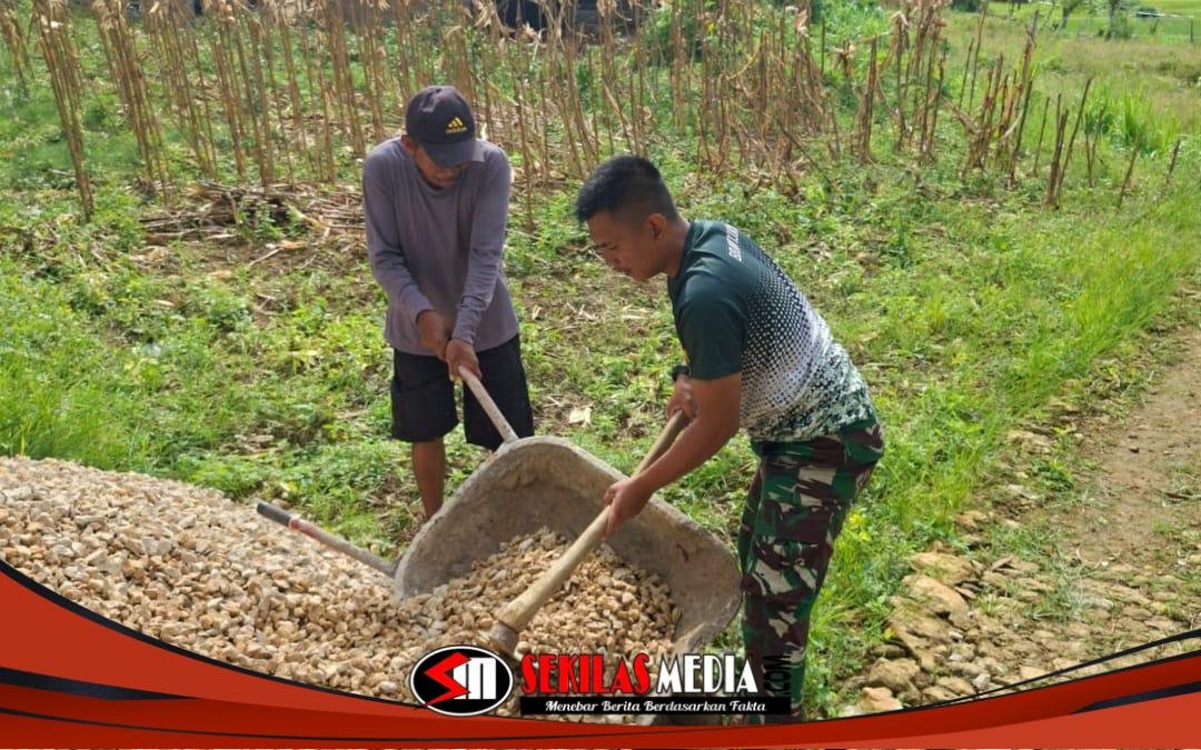 Material kerikil tersebut digunakan untuk kebutuhan pengecoran pondasi dan lantai rumah. Pengangkutan dilakukan secara manual bersama anggota Satgas TMMD lainnya dan warga sekitar. Meski harus melewati akses jalan sempit dan medan yang cukup menantang, proses distribusi material tetap berjalan lancar.