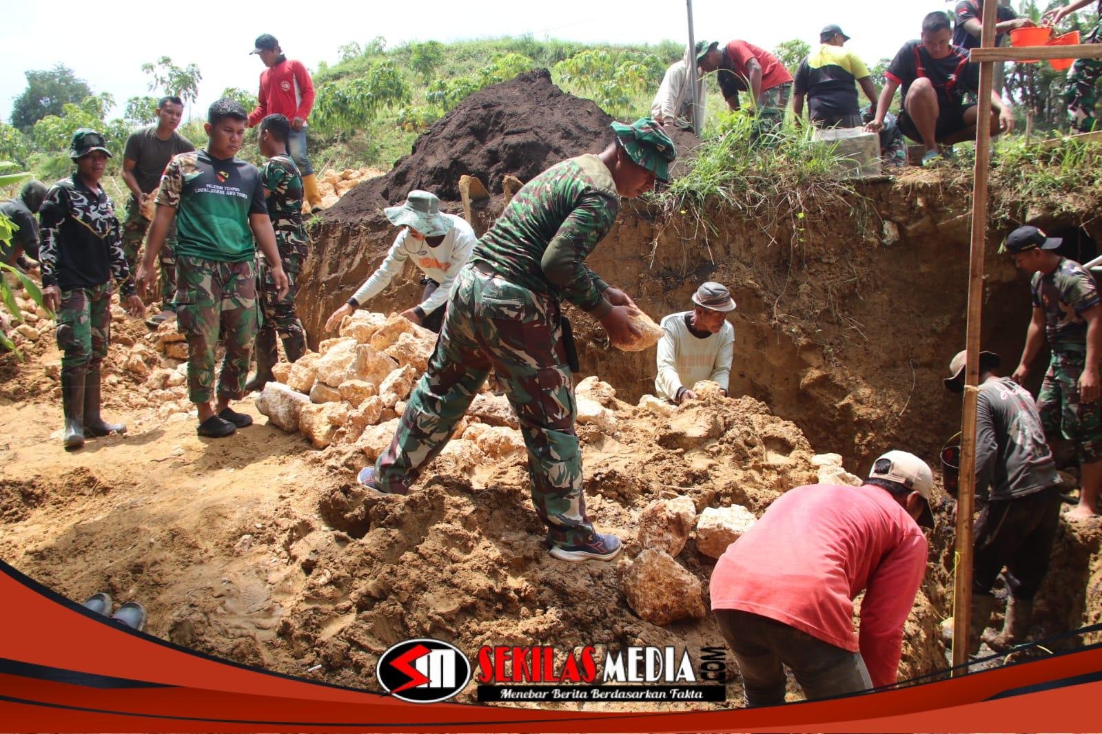 Sumenep,Sekilasmedia.com-Program TNI Manunggal Membangun Desa (TMMD) ke-127 Tahun Anggaran 2026 Kodim 0827/Sumenep memasuki tahap pembuatan pondasi bawah tembok penahan tanah (TPT) atau plesengan di Dusun Karang, Desa Mandala, Kecamatan Rubaru, Kabupaten Sumenep.