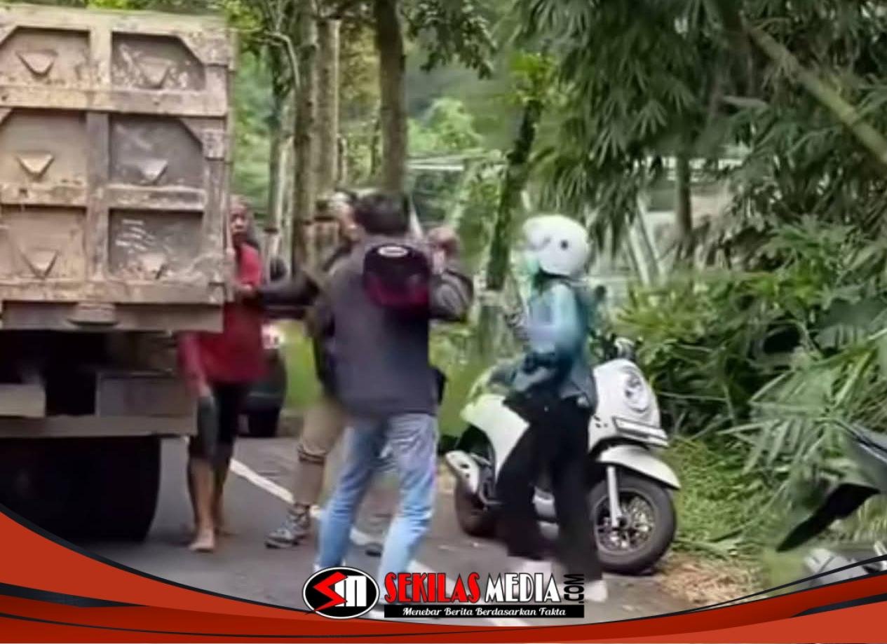 Setelah kendaraan berhenti di lokasi kejadian, tepatnya di kawasan Pujon, pengendara motor turun dan terjadi cekcok dengan sopir dump truck. Namun situasi justru memanas.