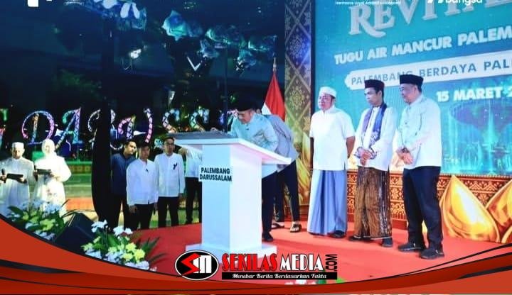 Bundaran Air Mancur (BAM) Tugu Cempako Telok Palembang Darussalam resmi dihidupkan kembali setelah menjalani revitalisasi besar-besaran.