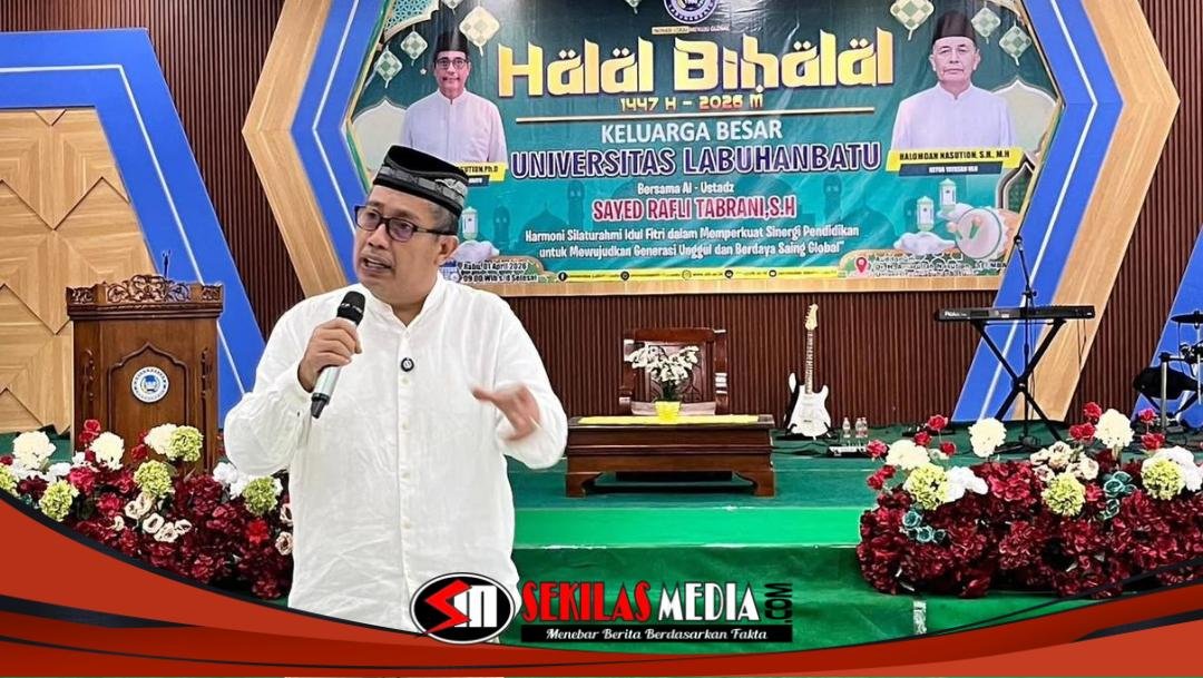 Labuhanbatu ,Sekilasmedia.com– Universitas Labuhanbatu menggelar kegiatan Halal Bihalal pada Rabu (1/4/2026) di Aula Dr. H. Amarullah Nasution, SE., MBA, mulai pukul 09.00 WIB. Acara ini dihadiri oleh pimpinan universitas, dosen, dan staf, menciptakan suasana yang penuh kehangatan dan kekeluargaan.